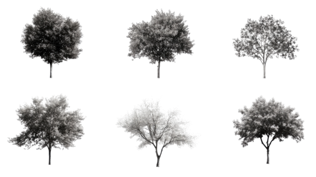 Clean transparent background with multiple trees and focused lighting, excellent for app UI elements and environmental marketing materials.