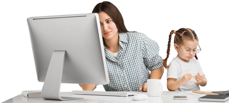 Happy loving mom hugging little daughter, spend time together on a transparent background