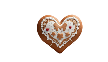 A cookie in the shape of a heart, adorned with a red heart, amidst a festive Oktoberfest backdrop