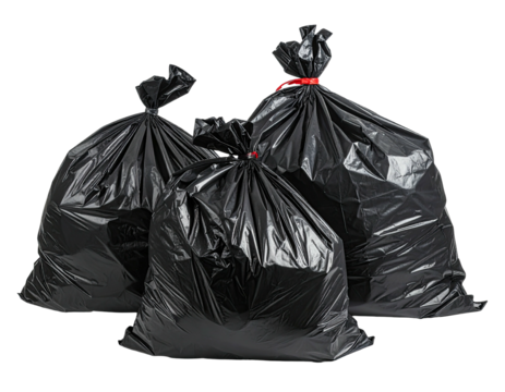 White and green garbage truck with rear compactor at angle view, isolated on a transparent background