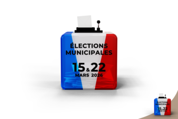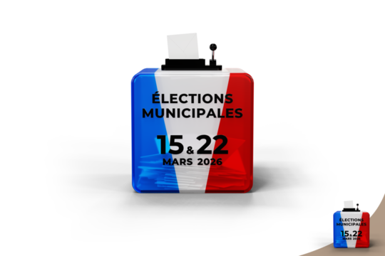 une urne de vote pour les élections municipale les 15 et 22 marc 2026 en France - rendu 3D sur fond transparent
