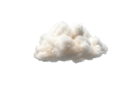 Fluffy white cloud isolated on a transparent background, ideal for creative designs and atmospheric imagery.