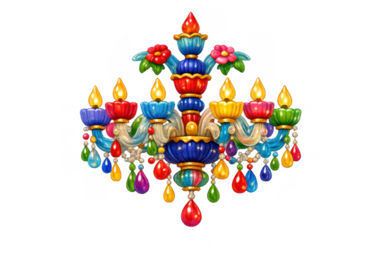 Colorful murano glass chandelier art with vibrant floral and jewel elements for interior design