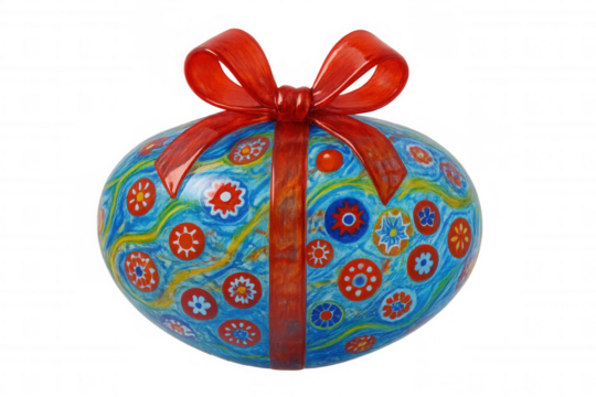 Millefiori murano glass easter egg gift with red ribbon, festive decoration for holidays and celebrations