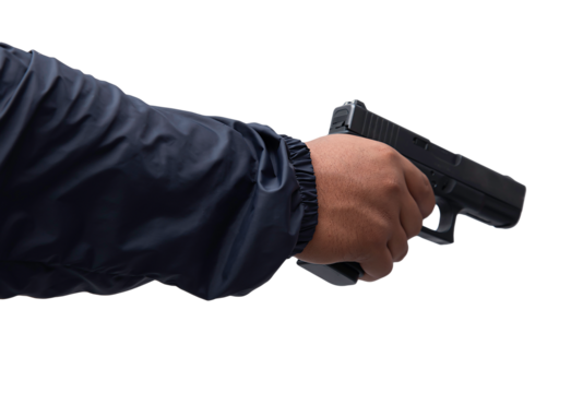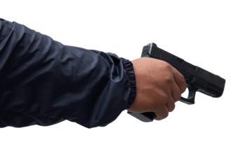 Burglar or terrorist. Holding pistol in various poses on background isolated with clipping path.transparent background. png.file