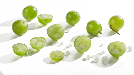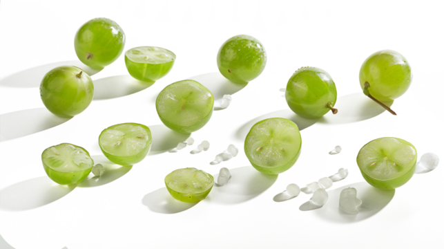 Half-cut Shine Muscat green grapes, isolated on a transparent background
