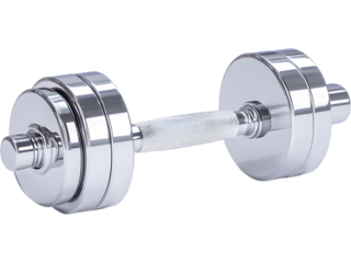Shiny chrome fitness dumbbell isolated on transparent background. Ideal for gym concepts, strength training visuals, and healthy lifestyle designs.
