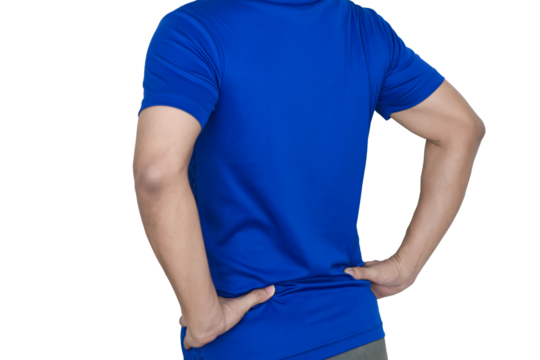 Man suffering back necks pain transparent background