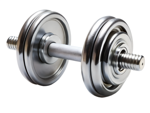 Chrome dumbbell for weightlifting and strength training isolated on transparent background