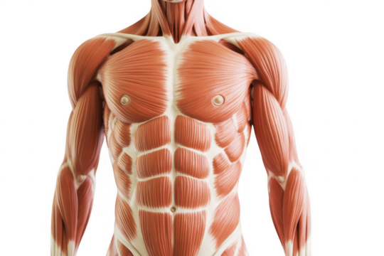 Human muscular torso muscles anatomy body fitness isolated on a transparent background