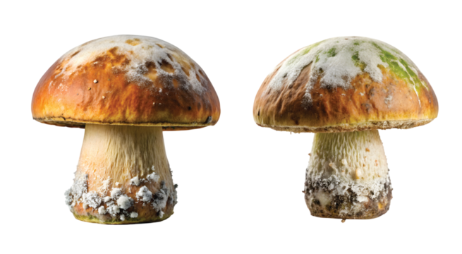 Mushroom Cap with Mold: A mushroom cap covered in mold, PNG style.