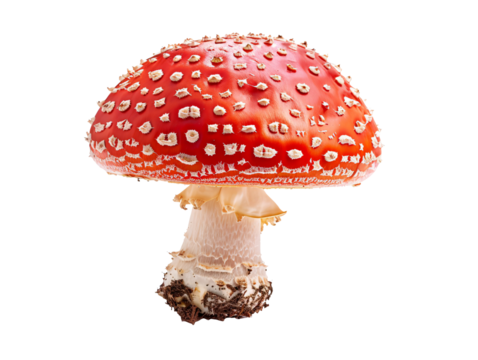 Whimsical mushroom with polka dot cap on transparent background