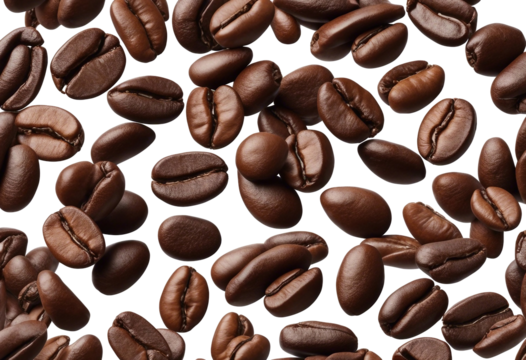 Set of roasted coffee beans on transparent background top view