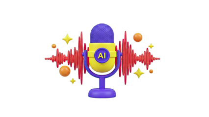 AI Microphone with Sound Waves and Abstract Elements