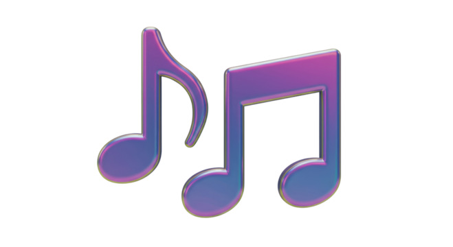 Purple 3d icon with white musical note on transparent background