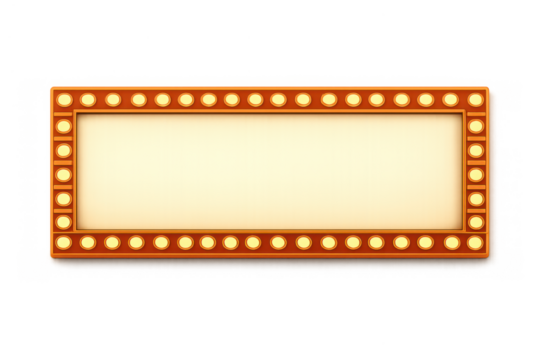 Illuminating vintage cinema or theater sign border, creating an eye-catching entertainment display with transparent background