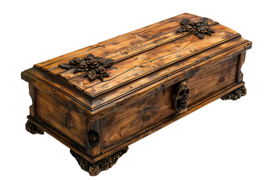 Vintage coffin with spider and cobwebs illustration on transparent background