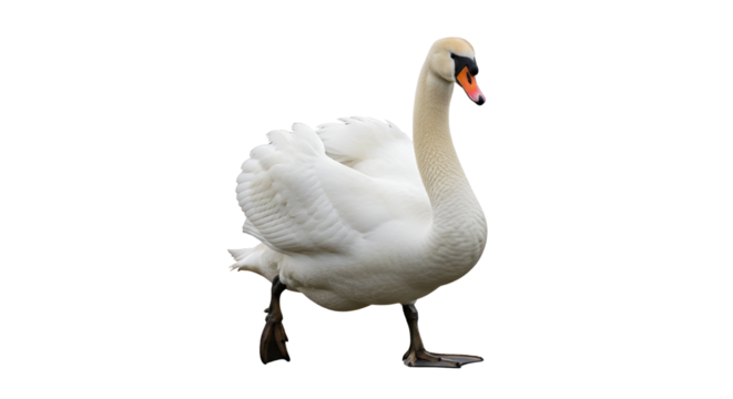 Mute swan flapping wings with one leg up isolated PNG with Transparent Background