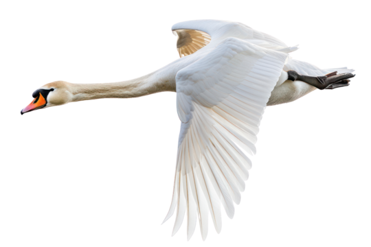 flying swan on isolated transparent background