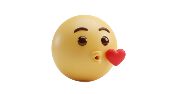 Blowing Kiss Emoji with Heart on White Background