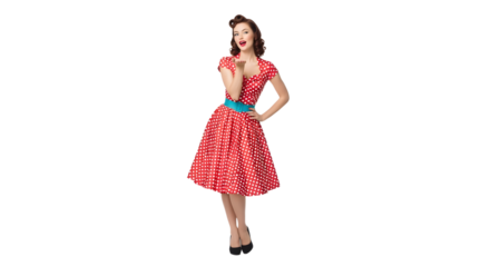 Retro Woman Blowing a Kiss in Red Polka Dot Dress