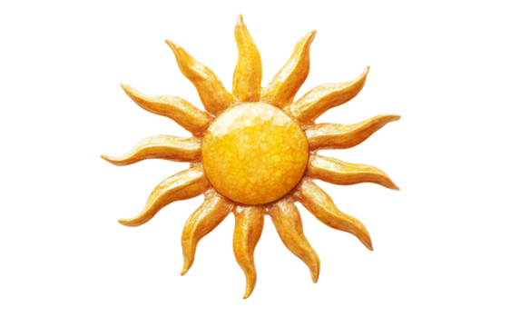 A small sun-shaped ornament radiating golden light as a symbol of warmth Isolated on transparent background.