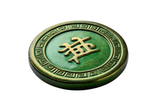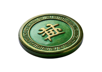 Traditional jade coin symbolizing prosperity in china isolated on transparent or white background