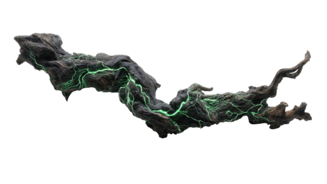 three intricately designed flame and wood masks with glowing blue centers on transparent background high quality
