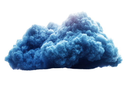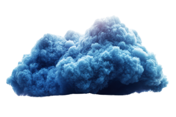 A vibrant blue cloud, showcasing billowing shapes and textures against a transparent background, ideal for creative and artistic projects.