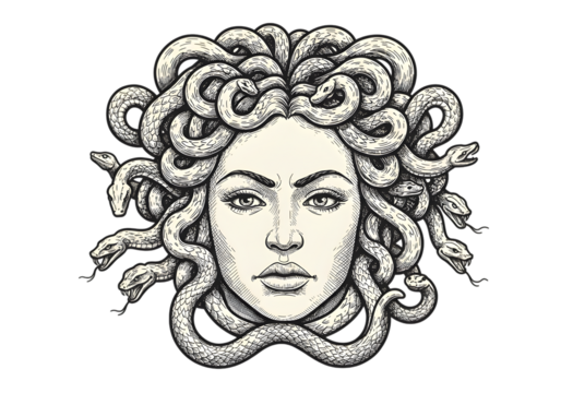 Medusa Gorgon Portrait Illustration with Snake Hair and Elegant Face