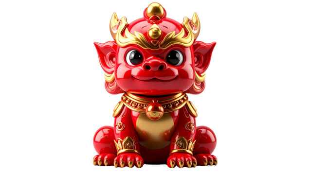 Vibrant red mythological guardian beast figurine with intricate golden details, embodying ancient cultural symbolism of luck, prosperity, and protection as a charming decorative accent