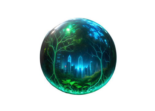 Digital binary landscape on transparent background
