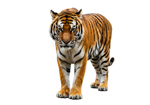 Majestic Bengal Tiger Standing Proudly Against a White Background