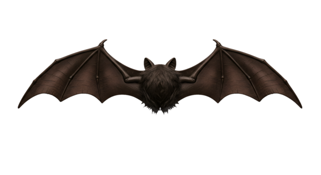 A black crow in flight, viewed from directly above, with wings spread wide, isolated on transparent background