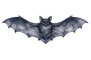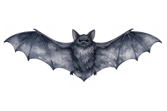 Flying watercolor bat with spread wings, spooky halloween animal illustration, nocturnal creature design