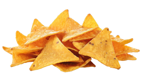 Tortilla corn nacho Chips, many angles and view side top front heap broken pile bowl salsa guacamole beef cheese dip on transparent background cutout, PNG file. Mockup template for artwork design