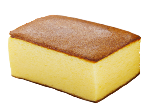 traditional japanese castella sponge cake slice with golden crust and soft airy texture isolated on transparent background i