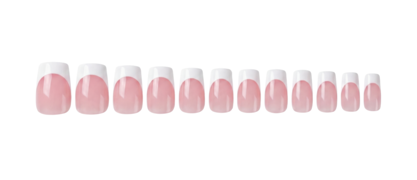 Hand with perfect french fade ombre gradient manicure on transparent background