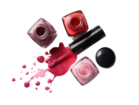Assorted nail polish bottles and spills