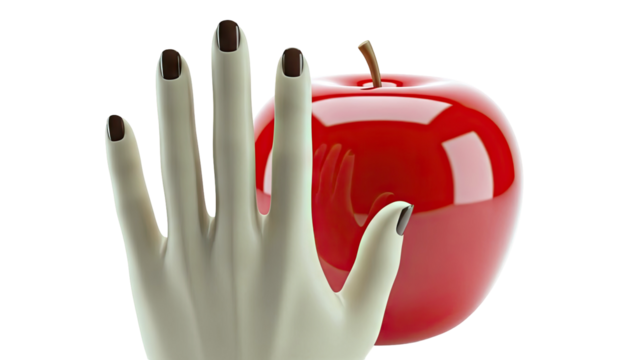 Hand with Dark Nails and Red Apple
