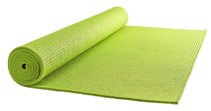 A green yoga mat is neatly rolled isolated on transparent background. Generative AI