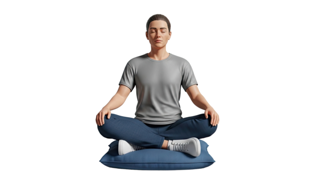 Man Meditating in Lotus Pose on a Blue Cushion