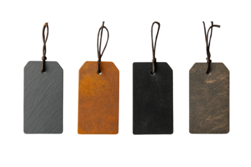 Isolated Blank Leather Tag on White Background, Set of Four