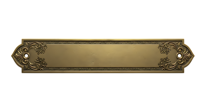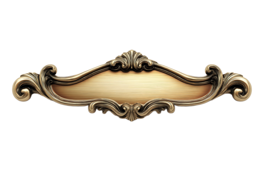 Ornate gold nameplate with intricate scrollwork on transparent background.