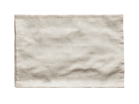 natural linen napkin in a neutral shade, great as background object for flatlays, isolated over a transparent background, textile design element, top view, cut out,