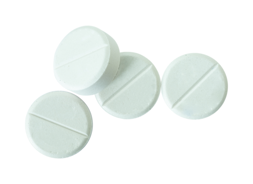 Round therapeutic pills or drugs for treatment isolated on transparent background, medicine and healthcare concept, top view