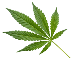 Cannabis leaf, isolated on a transparent background, cutout PNG file.