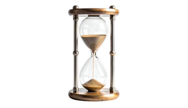 Golden Hourglass:  A classic hourglass with golden frame, the white sand slowly trickles through the narrow neck, symbolizing the passage of time, ephemerality, and the fleeting nature of moments.