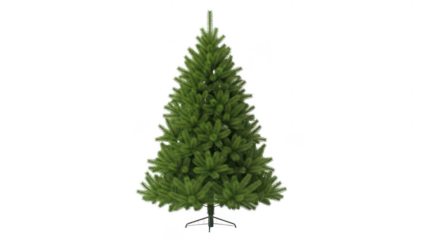 Artificial christmas tree on stand with green branches isolated on transparent background