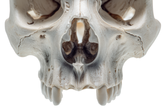 Closeup of a human skulls nasal cavity and teeth, isolated on transparent background